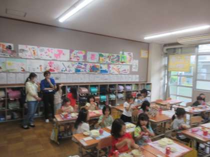 6月11日に給食試食会がありました。はじめに,学校給食についての説明がありました。学校給食がどのように変わってきているか,なにを大切に作っているかなどがよくわかりました。次に,じっさいに試食を行いました。参加された保護者の方からは,「ボリュームもあり,味付けも薄目で好感がもてました。」「とてもやさしい味付けで,お出汁の味と野菜のうまみを感じました。」とありました。最後に、教室で子どもたちが食べている様子を参観しました。