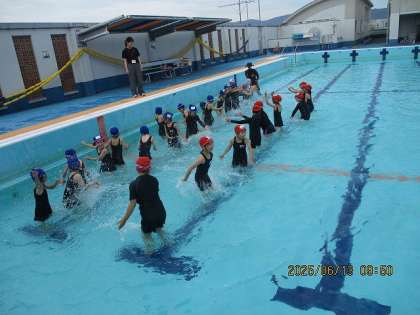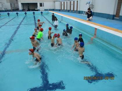 待ちに待った「みずあそび」の時間です。1年生と一緒の実施なので、お兄さん・お姉さんとして頑張ってくれた2年生でした。「こっちやで」と並ぶところを教えてあげたり、準備体操を一緒に回ったり、おしゃべりをやめてさっと聞いたり、とっても素敵な姿がたくさんありました。