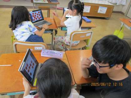 タブレットに提示したりんごやトマトの数を、