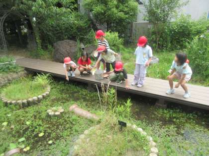 昨年度から,修繕が必要なため使えていなかったビオトープの橋ですが,先日,工事が完了して,使えるようになりました。とても素敵で丈夫な橋に生まれ変わりました。早速,子どもたちが橋の上で生き物を観察しています。