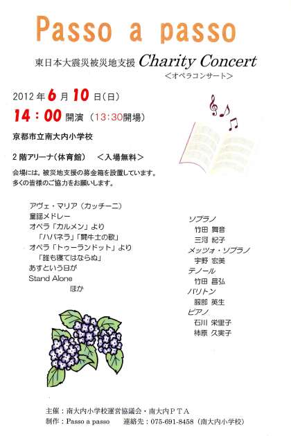 東日本大震災復興支援コンサート Passo a passo 〜Charity Concert〜 Reconstruction support for areas affected by last March's Great East Japan Earthquake
