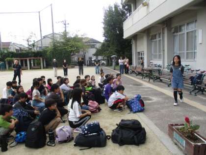 出発式の様子です。司会や係からの連絡は自分の言葉でしっかりと伝えられました。