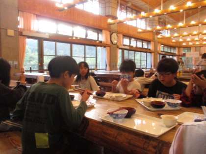 キャンプファイヤーに向けてしっかり食べます。