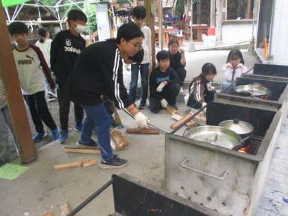 野菜の切り方,皮の後始末など,自分のできることをテキパキしています。
