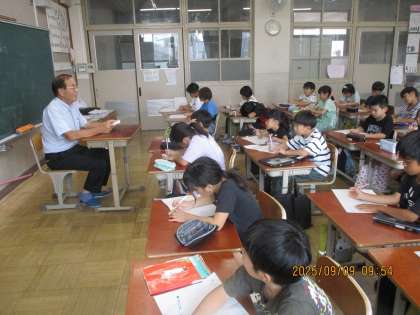 たくさんの方に自分たちが疑問に思っていることをインタビューさせていただいております。この日は、少年補導等でお世話になっている地域の方にゲストティーチャーとして来ていただきました。あっという間の1時間で、「夏まつり」や「もちつき」「子どもみこし」について色々聞かせていただきました。まだまだ調査は続きます・・・