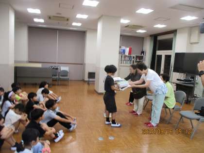 地域の方にたくさんインタビューを積み重ねている3年生。この日は新生クラブの方々からぞうきん・足ふきマットを頂きました。3年生が代表として贈呈式に参加させていただきました。またその時に、地域のことや、新生クラブのことについてなど色々インタビューさせていただきました。とても丁寧にやさしく教えていただきました。たくさん情報が集まり、地域のことにも詳しくなってきました。
