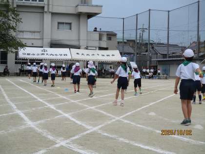 2年生は、1年生と一緒に、団体演技の練習をしていました。