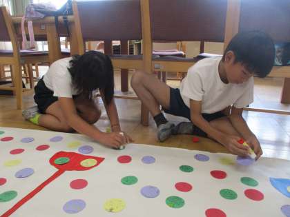 運動会の目標を全校で書いたのですが、その貼付け作業を3・4年の学級委員さんたちが行ってくれました。急なお仕事でしたが、担当の先生に「4年生の学級委員さん頑張ってくれていました!」と報告をいただき、うれしさとさすがだなあという思いがあふれました。今後もよろしくお願いします!