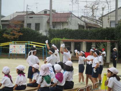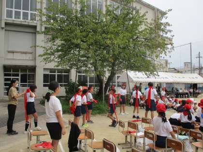 応援団は児童席の端でどの競技中もずっと大きな声を出し続けていました!その声でがんばることができた人も少なくないはず。本当に素敵な姿でした。さらにエール交換では今までで1番の声でパフォーマンスをしてくれました。児童席からもそれに引っ張られるような他のみんなの声が響いていましたね!