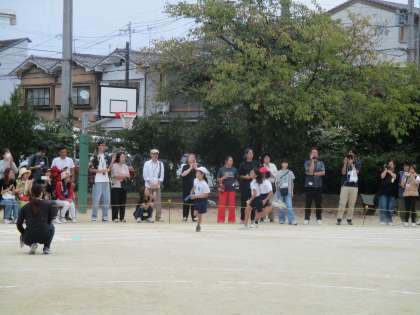 4・5・6年生で力を合わせた全員リレー。赤・白・黄・青のどのチームも本気で走りました!4年生は前半を担当し、トップバッターも務めました。途中、誰かが走っているときには声援が鳴りやまなかったですね。そのくらい熱いレースにできて、すばらしかったです。