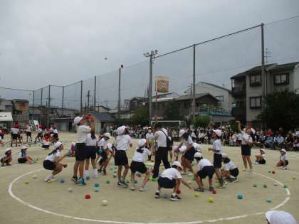 たてわり種目の玉入れも頑張りました。高学年は比較的、低学年より身長が高いので、その分たくさん入れられましたね。しかし、それでも入れるのはなかなか難しい…。僅差でいい勝負でしたね!