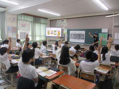 6年生の社会科では今週から新しい時代の学習が始まりました。今日は「長篠の戦い」の様子から、どんな武器が使われているか探したり、戦国武将の名前を探したりしました。「見つけた人〜!」という声かけには、たくさんの手が挙がりました。
