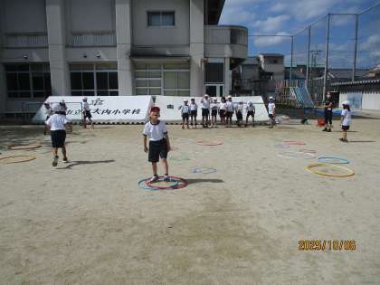 5歩とび、しまとび、ゴムとびなどいろいろなあそびを楽しんでいます。