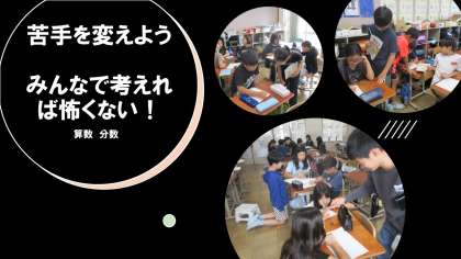 今日は算数(分数)の確認テストの予定でしたが、みんなに理解度を聞くと、「出来ないかも…。」「まだわからないところがある。」ということだったので、急遽、復習の時間をつくりました。