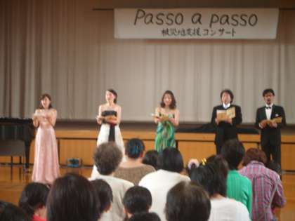 オペラ歌手グループ“Passo a passo”と本校のピアノ教室指導者とのご縁により始まった復興支援コンサートも2年目2回目を数え,今後も年に一度,一歩ずつ皆様と共に続けていければと思っています。