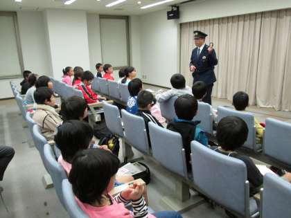 4年生が,京都府警本部を見学しました。ビデオやお話で警察の方々の仕事について学習しました。その後,交通管制センターや通信指令センターなどを見せていただきました。白バイにも乗ってみました。