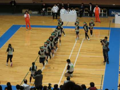 2月17日(土),枚方パナソニックアリーナでロープジャンプ近畿地区予選大会が行われました。午前10時過ぎ,6年生が黒のRoadと書かれたおそろいのTシャツ姿で登場しました。10人以上が一緒に跳ぶ大なわとびです。「跳んだ回数×人数」と,跳んでいる人がロープの外のメンバーと入れ替わったときのポイントの総合得点で競う競技です。勝負は3分間,京都の代表として心を合わせ,力いっぱい跳びました。自分達の記録を大きく更新し,うれしさで子ども達も応援のお母さん達も涙,涙でした。近畿地区の代表にはなれませんでしたが,悔いのないロープジャンプだったようです。