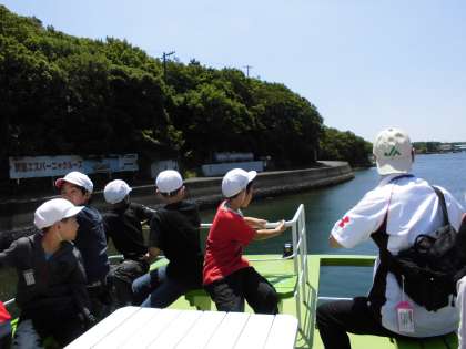 賢島港から「みさきの家」なかよし港までの船で移動しました。