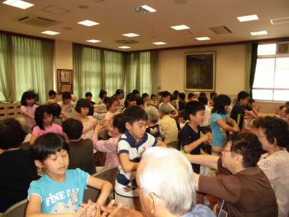 まず,子どもたちの間で大人気の「ありのままで」の歌などを歌いました。続いて,自分たちが作った「夏」の俳句を披露したり,手遊び歌の「茶摘み」をいっしょにしたりしました。
