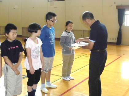 7月の朝会では,よい歯の表彰がありました。