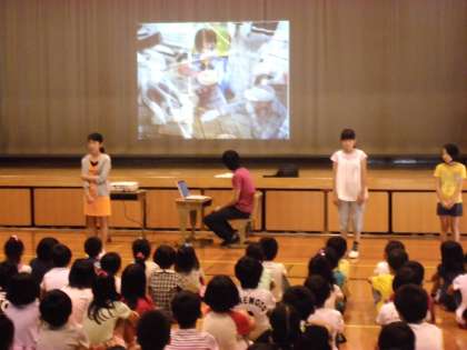 南大内タイムでは5年生が「花背山の家でのこと」を発表しました。