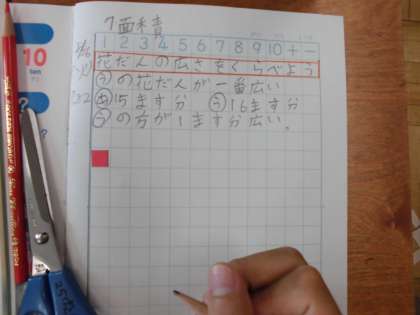 今日は,面積を「平方センチメートル(㎠)」で表しました。