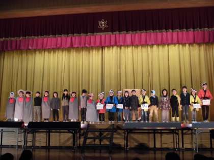劇は雪深い道を歩くおじいさんの様子や大晦日の町の賑わいなど,動きや歌などで豊かな表現で表していました。6人のお地蔵さんもいい味を出していました。