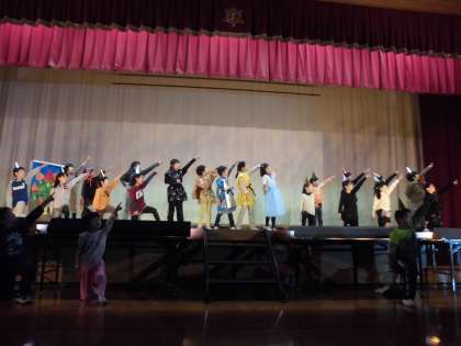 ドロシーが,カカシ・ブリキのきこり・ライオン・そして飼い犬のトトとともに,オズの都へむけての旅をします。ミュージカル仕立てで,元気よく楽しそうにみんな活躍することができました。