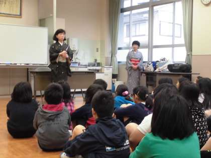 「古典の日」を契機とした伝統文化体験〜専門家派遣事業〜として,5時間目に4・5年生合同で,「日本舞踊」について学習しました。