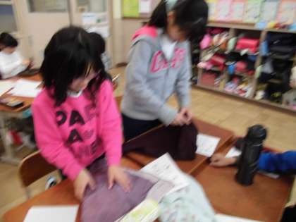 ふろしきで物を包む活動を通して,日本に伝わる文化や伝統のよさを知り,それを大切にしていこうと感じたようです。