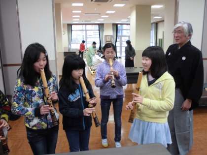 尺八は,普段使っているリコーダーとは異なり,音を出すのが難しく苦戦していましたが,何人もの子が音を出すことができました。