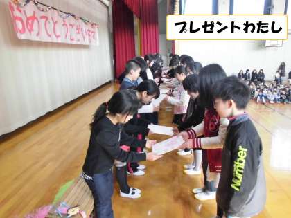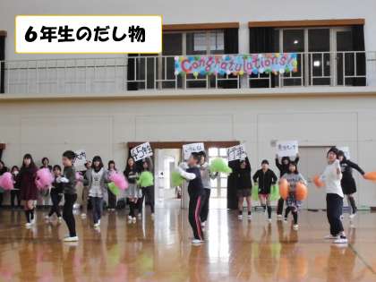 3月4日(金)「6年生を送る会」があり,卒業する6年生に,1年生から5年生まで,趣向を凝らした出し物をしました。