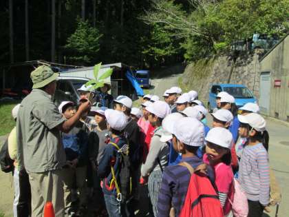 山の家で自然観察をしました。小篠先生から花や木の説明をうけました。