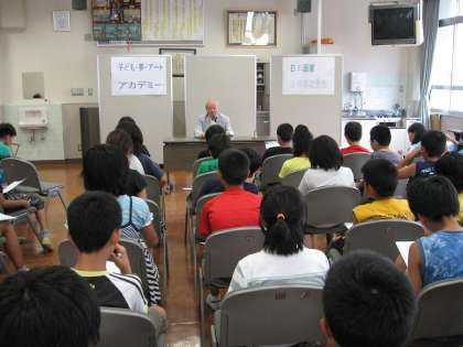 絵を描くときにたいせつなのは集中して自然現象を見つめること,なぜと思うこと,その中に新しい発見があり,音楽にもスポーツにもつながること,西洋の絵と日本画の違いなど・・・。子どもたちからの質問も次々に出て,ひとつひとつにていねいに答えてくださいました。90分があっという間に過ぎていきました。