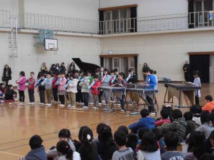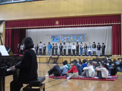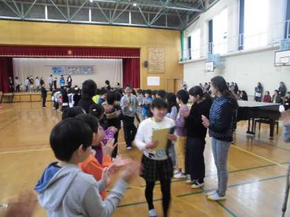 1年生から5年生が,心を込めた歌や言葉で6年生の卒業を祝いました。縦割り活動や登校班でお世話になった6年生を前に,思いがあふれてしまった子もいました。