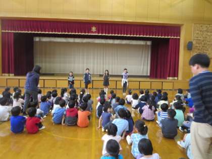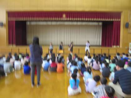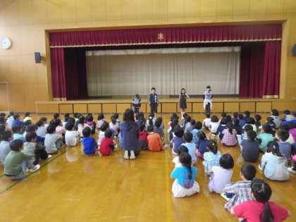 朝会に引き続いて、児童会の子どもたちが、五月の生活目標「相手の目を見て、はっきりとあいさつしよう」を紹介してくれました。気持ちの良い挨拶から、一日をスタートさせたいですね。