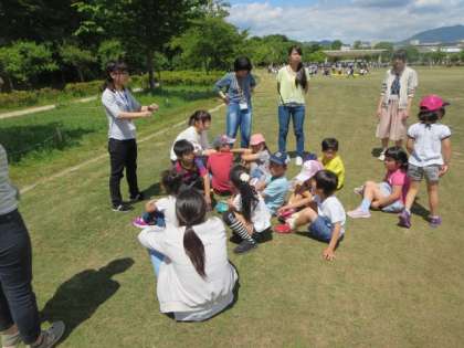 今日はてんとうむしクラブの日でした。学生ボランティアの皆さんと一緒に、1〜3年生のてんとうむしクラブに申し込んだ人たちが、梅小路公園に行ってきました。