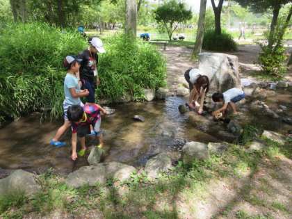とても良い天気で、芝生広場の遊びも、川での水遊びも楽しく行うことができました。