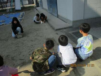 理科も新しい単元です。鏡をつかって日光を跳ね返して的当てをしました。やっているうちに色々なことに気づいていく子どもたち。どんどん何かを地面で始めていました。