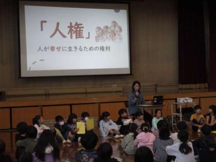 各クラスが1年間,大切にしている学級目標を発表し合いました。「みんなが幸せに過ごすために」はどんなことを意識して生活するのか改めて考える機会になりました。