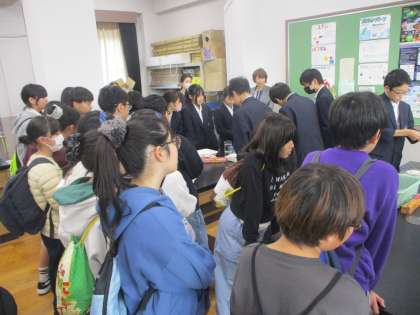 八条中学校オープンスクールの様子です。体験授業の後は部活動見学に行きました。