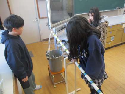 今日は、「力を入れる位置によって手ごたえがどう変わるか」という実験をしていました。「重っ!」「軽っ!」と色々な所で声が聞こえてきました。これからも体験を元にして自分の考えを表現していってほしいです。