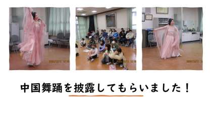 学習終盤では、中国舞踊を披露いただきました。きれいなお衣装・しなやかで柔軟な動作に見とれました。