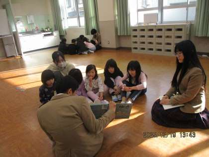 絵本が大好きな子どもたち、とても集中して聞き入っていました。最後の感想タイムでは、「今は冬だから、冬の本が多かったのかな、と思いました。」「上手に読んでくれて、うれしかったです。」と、1学期より内容の深い感想を伝えてくれ、子どもたちの成長を感じました。