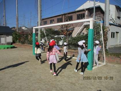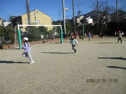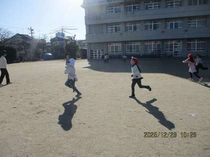 2学期を頑張ったご褒美にお楽しみ会をしました。みんなで楽しく遊べるあそびは?と、何をするかも、先週みんなで話し合って決めました。「いすとりゲーム」は、座れなくて悲しくなってしまった人もいましたが、「けいどろ」は全員が警察役と泥棒役になって、思う存分走り回って楽しむことができました。「かくれおに」は、見つかっても鬼にタッチされるまで逃げることができるので、こちらも思う存分走り回っていました。みんなで過ごす時間は楽しかったと感じてくれていたらいいなと思います。