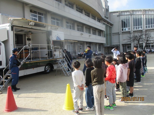 16日(金)の2時間目に避難訓練を行いました。地震を想定した訓練です。頭を守ることや、周りに何もないところで身を低くすることなど安全ノートを使って確認をしたあと、緊急の放送が流れました。みんなすばやく机の下にもぐり、頭を守りました。放送を聞いて落ち着いて避難をすることができました。1・2・3年生はその後起震車の体験をさせてもらいました。大きな揺れにびっくりしていました。大きな地震がいつ来てもおかしくないと言われています。「備えあれば憂いなし」一度ご家庭でも防災についてお話していただければと思います。