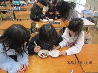 中間休みに行われたかけあしタイムの様子です。一定のペースで走るのはまだまだ難しい1年生ですが、気持ちよく走れていました。