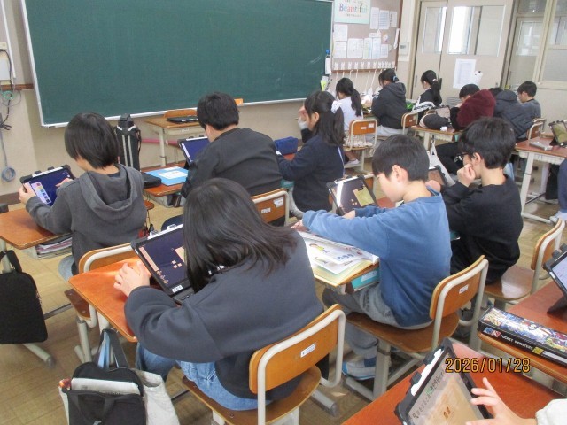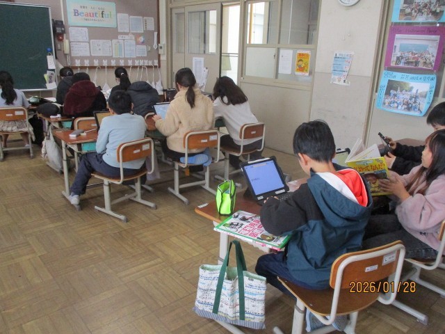 総合の学習では福祉の分野で高齢者の方に視点を当てています。高齢の方がどんなことに困っているのかを3人グループに分かれて調べました。iPadや本などを駆使してどんどん調べられました!さらに学びを深めていきましょう。