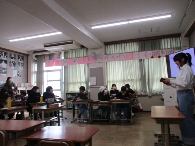 中学生になった自分、高校生になった自分、大人になった自分・・・様々な自分を思い浮かべ、自分の背中を押してくれる名言を紹介することができました。保護者の方々にも発表を見ていただき、温かい雰囲気の中でこの学習の締めくくりができてよかったです。