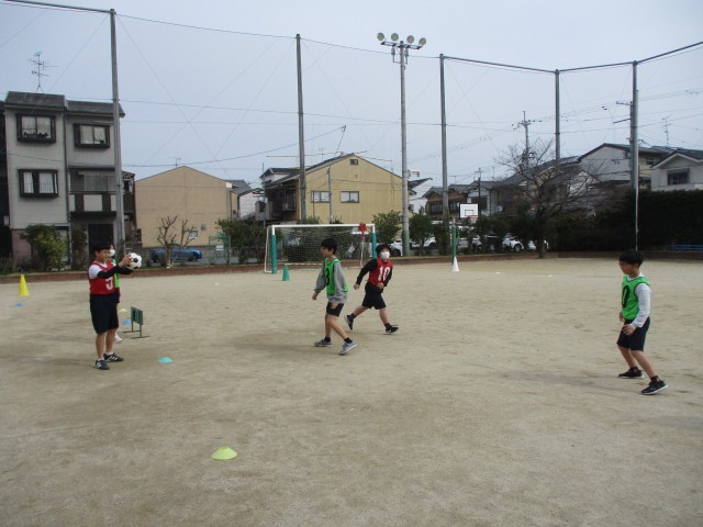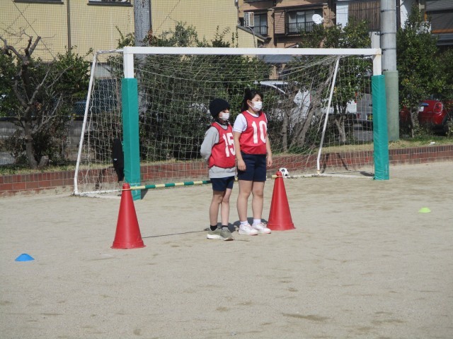 子どもたちは友達どうしで声を掛け合い、励まし合い、とても和やかにゲームを進めていました。いろいろなことに臨機応変に対応し、「サッカーを楽しむ」ということを意識して協力することができていました。6年生として、下級生のお手本となる姿だったと思います。これからも、準備や片付けに積極的に参加し、体育を楽しんでいってほしいです。